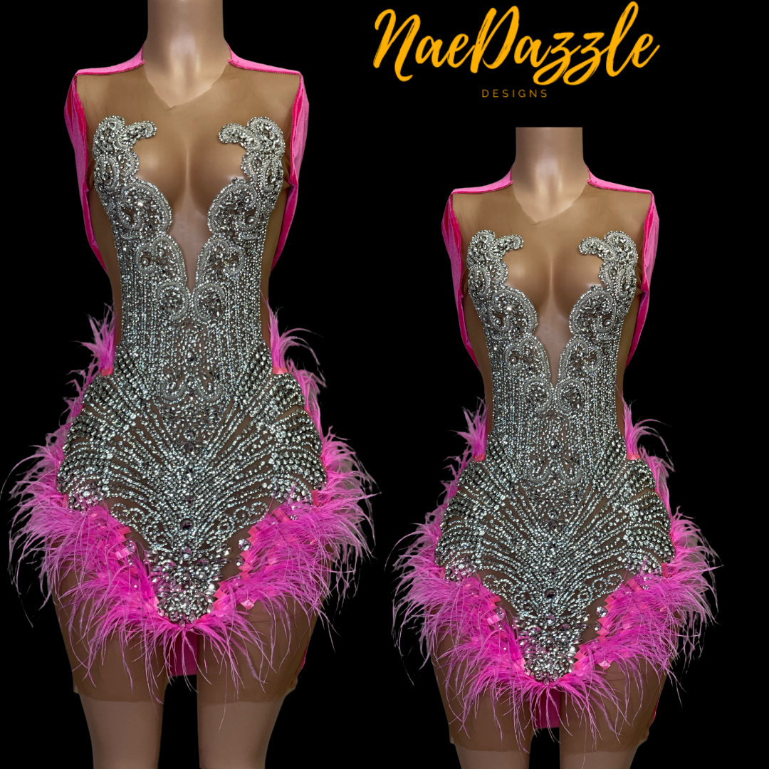 This beautiful dress is full of loo excitement with all the details 🥰Fully rhinestone bodice available in silver, gold, & rose gold  More colors may be available. This super soft stretch smooth velvet fabric comes in various color. The bottom is covered with ostrich feathers can come in color to match design. If you don’t want feathers  it that is and option. Every dress is custom made and can take between 3-4 week turn around. If garment is finished before it will be shipped immediately. There is no refund for purchase.